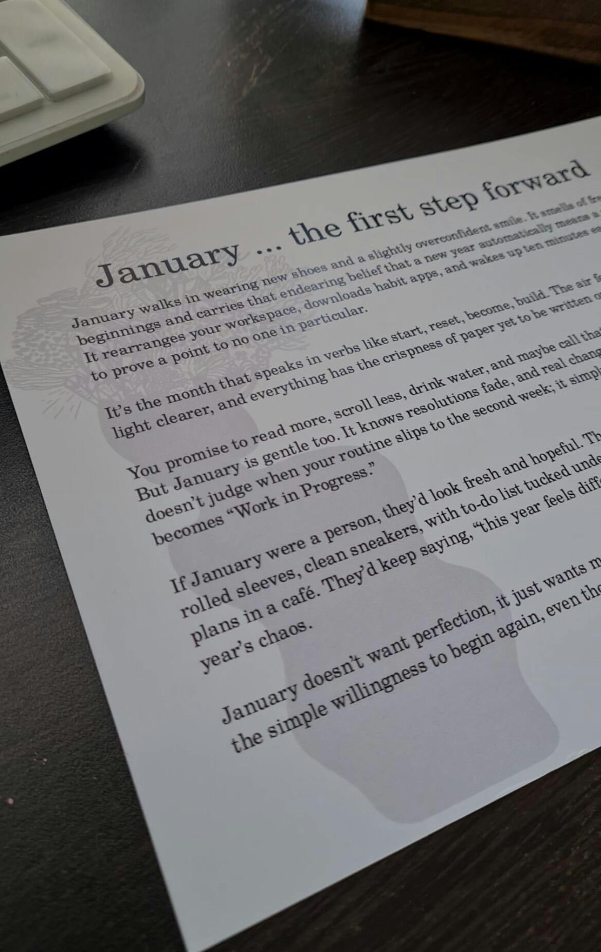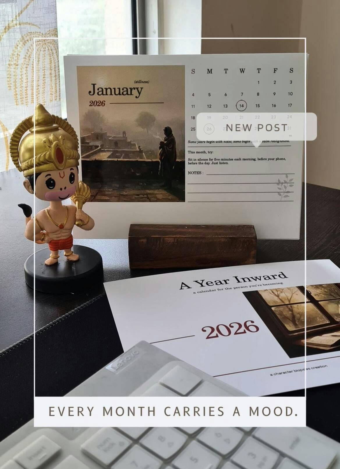 Every page blends art, introspection, and storytelling, turning a simple calendar into a year-long inward journey.